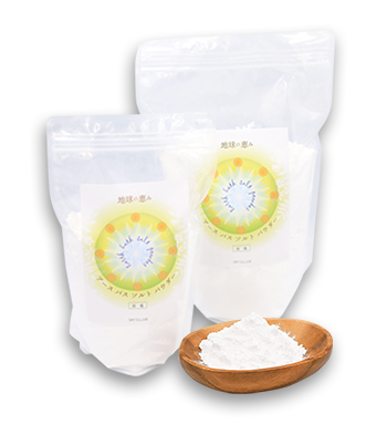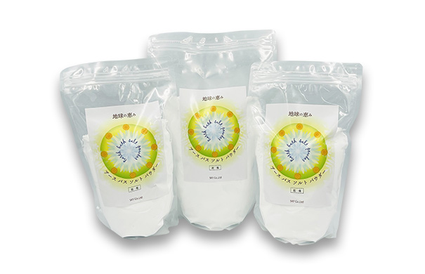 アースバスソルトパウダー「地球の恵み」は、バスソルトでは数少ないパウダータイプ。